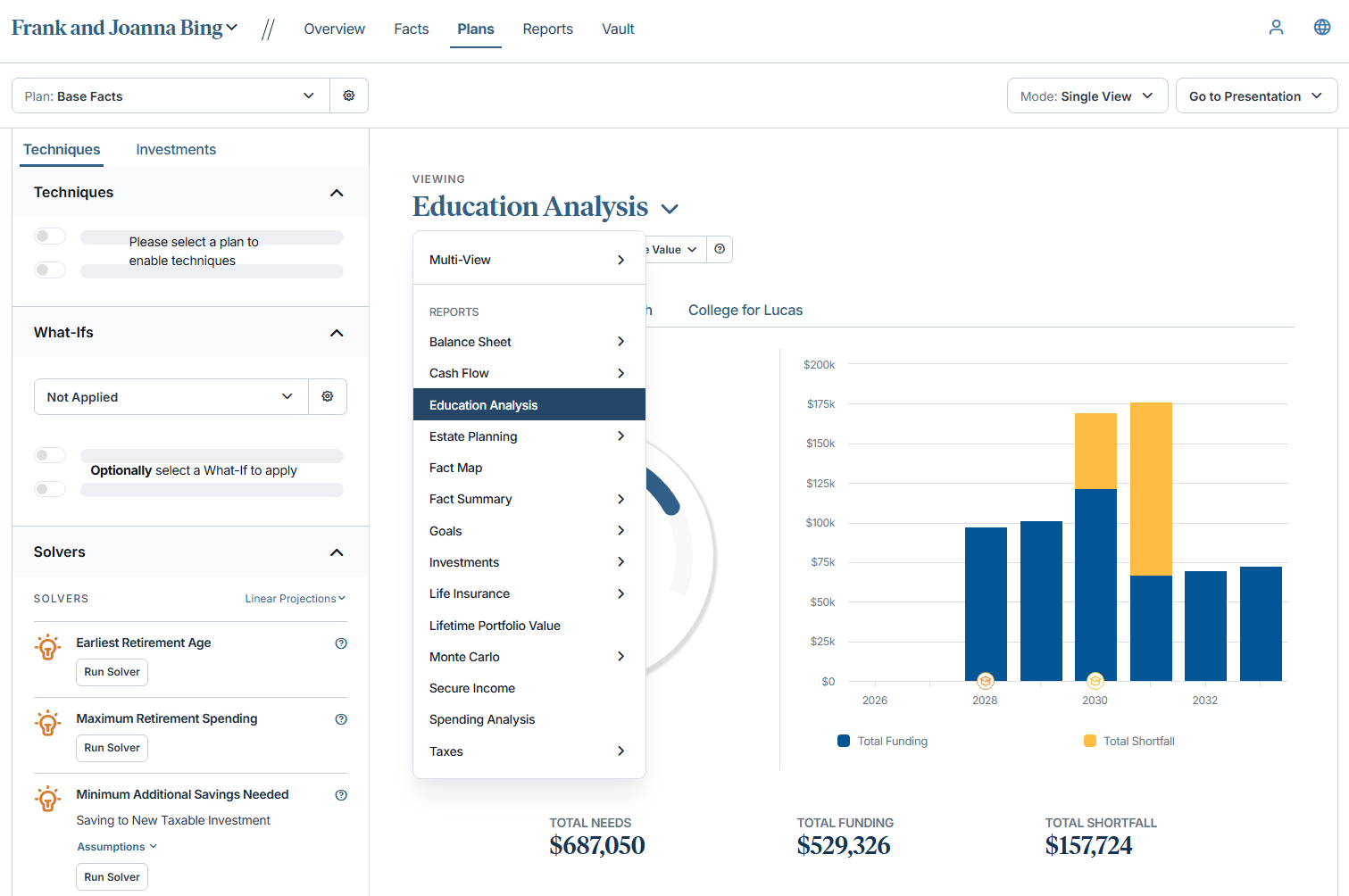 Many of the conversations you want to have with clients—whether they’re on track for education goals, if their spending is sustainable, or what legacy they can leave—haven’t always been easy to illustrate. Without clear, goal‑specific insights, it can be challenging to show clients where they stand or how different choices shape their outcomes.