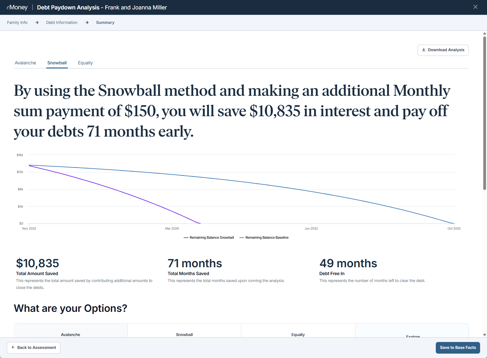 For the first time, simplify complex debt decisions with clear comparisons. Use the new Debt Paydown module to: